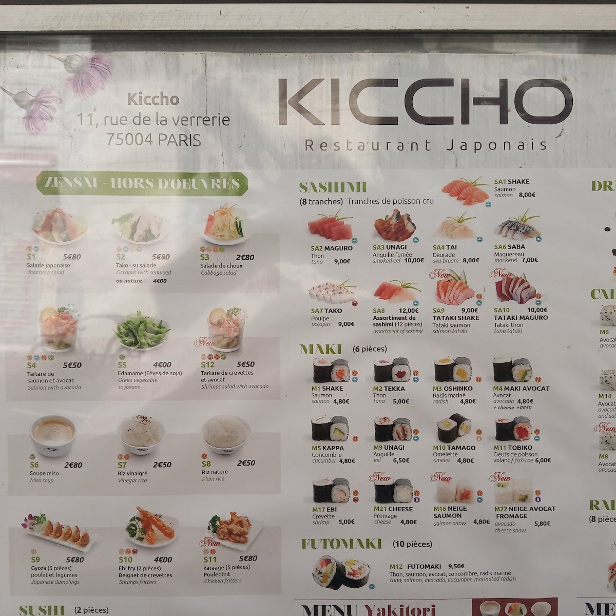 Welcome to Kiccho, a hidden gem located in the heart of Paris at 11 Rue De La Verrerie. This cozy spot offers an extensive menu of traditional Japanese dishes that will tantalize your taste buds.